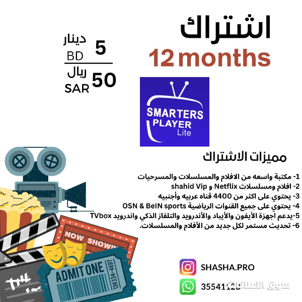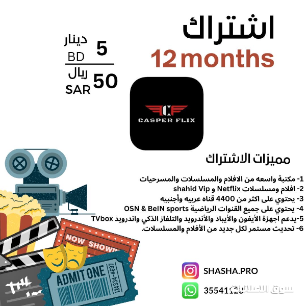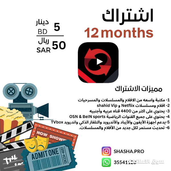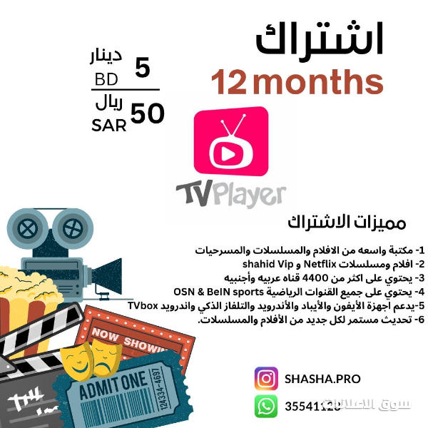 إشتراكات لمشاهدة الأفلام والمسلسلات من خلال الهاتف والتلفاز بقيمة 5 دينار بحريني المدة سنة