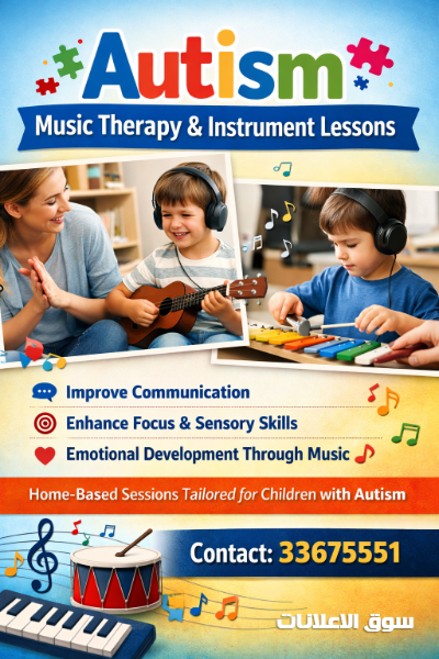 جلسات متخصصة داخل المنزل تجمع بين العلاج بالموسيقى وتعليم الآلات الموسيقية